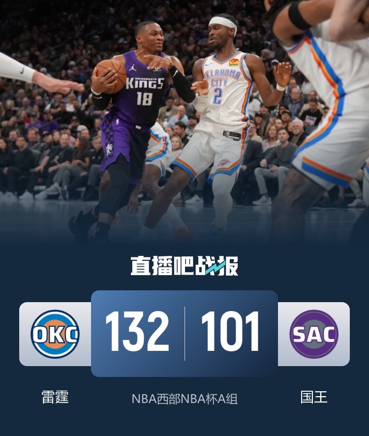 11月8日讯 NBA杯西部A组,雷霆客场挑战国王,此前雷霆8胜1负稳居西部第一,国王则是3胜5负排名西部第十二,此役萨博尼斯因伤缺阵。